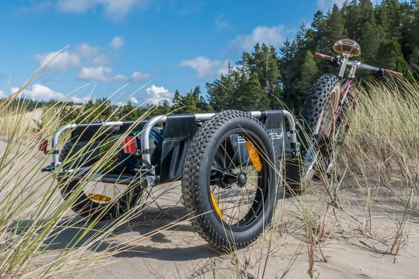 Don’t let your adventures be limited to the pavement. The 16+ Wheel Kit improves handling over snow, sand and gravel. The kit includes two 16×3” push button wheels with a knobby tread. A wide range of acceptable tire pressures let you adjust the stiffness to your liking. Let a little air out and the tires soak up the bumps for your passengers. Say goodbye to the sidewalk. Constructed with aluminum rim/hub and stainless steel spokes.