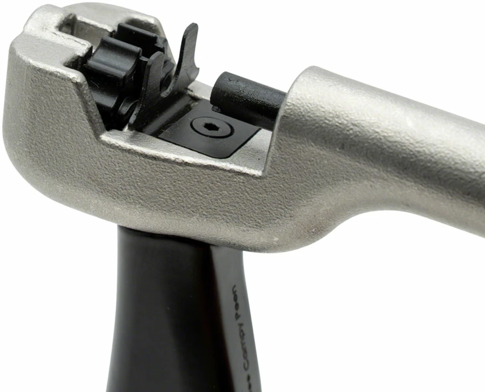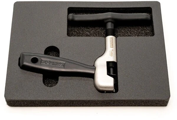 The chain tool is fundamental to bicycle mechanics. As drivetrains push the envelope, however, chain tools must evolve to keep pace. The Pedro’s Tutto Chain Tool II has done just that. The Tutto II blends ergonomic, organic design and noticeable industrial stature with patented innovations like the Fit Dial and RPG and novel additions like the Peening Bit for Campagnolo® 11, 12, and 13-speed chain assembly, ergonomic set-back handle design, and Guide Pin Shear Slot. These unique features and a new replaceable bridge make the Tutto II the most versatile chain tool available, compatible with almost any chain from single speed to 13-speed and beyond including SRAM® Flattop chains. Lastly, the Tutto II was designed with season after season of professional service in mind featuring heat-treated tool steel construction for superior strength and lasting performance, and simple disassembly to make servicing and part replacement easy. Backed by Pedro’s lifetime warranty.