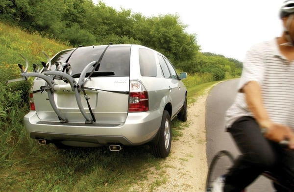 Saris’ Bones 3-Bike rack unites utilitarian strength and modern style. Crafted of incredibly strong, injection-molded plastic, the four arched leg mounts and two arched arms cradle your bikes on different levels to minimize unwanted handlebar and seat contact. Six highly adjustable straps, each equipped with soft, vinyl-coated hooks, hold the rack down, while the four legs have grippy rubber feet to provide a sturdy base that won’t harm your vehicle’s finish. Ratcheting, soft-touch, anti-sway straps ensure a tight grasp on your bikes. The Bones is made out of 100% recyclable, non-rusting parts and fits almost all vehicles—even those with spoilers. Plus, it folds fast for easy portability and storage.