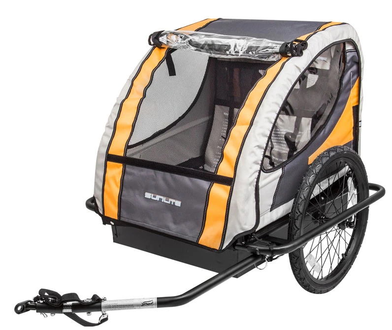 Enjoy quality time with your little ones or haul around groceries with Sunlite’s Hard Shell Deluxe Trailer Tot. Its protective steel frame is covered with 600D polyester and comfortably fits two children. It also converts to a cargo trailer with side rails. If the weather turns sour, the trailer’s canopy keeps your children dry and reflective accents enhance visibility. The Deluxe Trailer Tot easily connects to your bike’s axle and its quick-release 20-inch aluminum wheels roll smoothly along the pavement behind you.