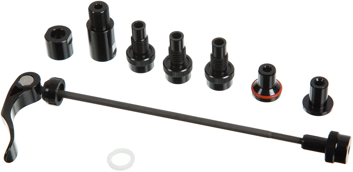 – 04 The thru axle adapter kit is for bikes with a 12 mm thru axle. The axle adapter is required to couple the rear stay with the