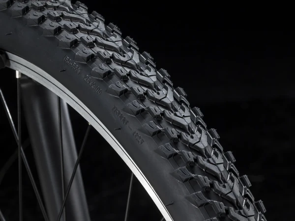 820 has a strong steel frame, a reliable 21-speed Shimano drivetrain, semi-slick tires that roll well on pavement and trails, durable alloy wheels, and a suspension fork that takes the edge off bumps. Plus, it has mounts so you can accessorize with racks, fenders, lights, and more.