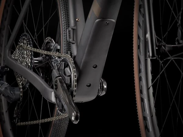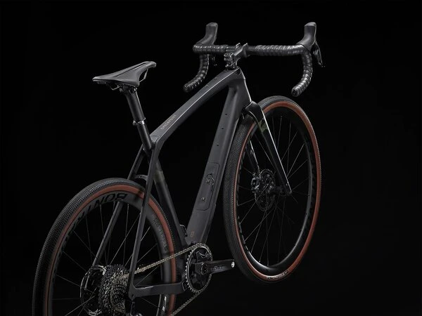 A 700 Series OCLV Carbon frame with Front IsoSpeed and carbon armor, a progressive geometry that’s stable at speed and efficient when you’re grinding up a climb, internal storage, hidden cables that won’t interfere with bags, and integrated frame bag and fender mounts. Plus, a carbon fork, 2×12 SRAM Force eTap AXS wireless electronic drivetrain with a wide-range cassette, and Bontrager Aeolus Pro 3V OCLV Carbon wheels with wide 700x40c gravel tires that provide extra traction and stability. Fits up to 45c tires.