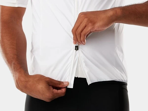The Circuit Windshell Vest is an ultra-versatile packable vest essential for crisp windy rides when your core needs protection. Not only is it windproof, but it also features a full-length two-way YKK zipper for easy access to jersey pockets from the bottom up and an extended rear drop tail design with a stay-put silicone gripper for coverage against road spray.