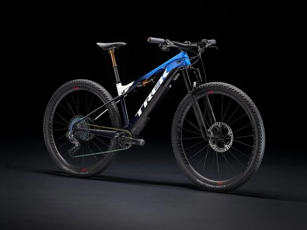 A lightweight, full OCLV Mountain Carbon frame with 60mm of travel, a 120mm RockShox SID Ultimate fork with Charger Race Day damper, remote lockout, and Trek’s exclusive lightweight IsoStrut FOX Factory shock. A Fazua Ride Trail 50 motor and 250Wh battery that can assist up to 20 mph when it’s on, and gives zero drag when it’s off, plus a handlebar-mounted Fazua Ride Remote FX controller. A SRAM XX1 Eagle AXS wireless electronic drivetrain, a FOX Transfer SL dropper, and Kovee XXX 30 carbon wheels.