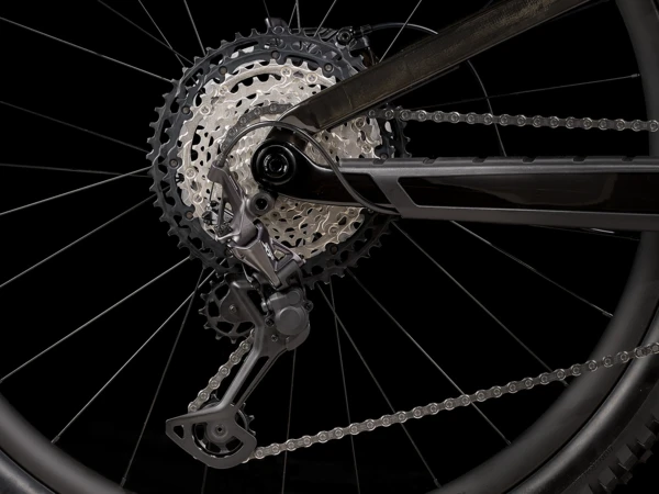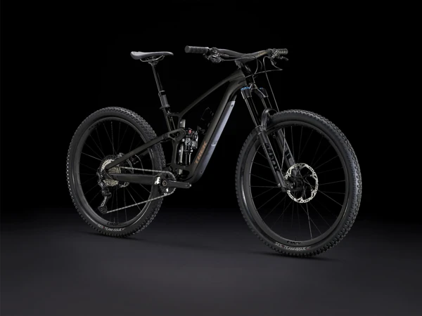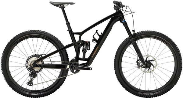 Fuel EX 9.8 is a hard-charging trail bike with a light and stiff carbon frame that’s smooth, quiet, and holds its own when you pick a line. It’s loaded with the latest tech like a wireless SRAM GX AXS drivetrain that’s super clean looking and customizable. 150mm front and 140mm rear suspension keep you in control on the roughest trails and it’s all topped off with carbon Bontrager wheels with a quick-engaging hub.