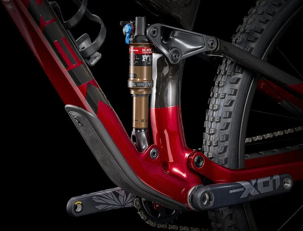 A light and stiff OCLV Mountain Carbon frame with internal storage, FOX Factory suspension with Kashima Coat and an efficient yet plush RE:aktiv with Thru Shaft damper. Plus, SRAM’s latest X01 Eagle drivetrain with a huge 52-tooth cog and Bontrager carbon wheels and a whole bunch of other carbon parts for lower weight and elevated good looks.