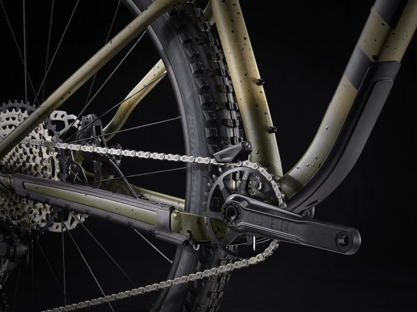 – 29er wheels and wide 2.6″ tires make for a grippy, confident, and fast-rolling ride