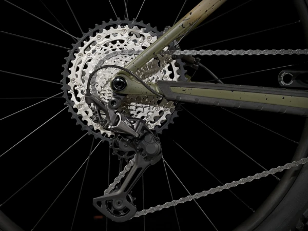 A lightweight aluminum frame, a 140mm FOX Rhythm fork with beefy 36mm stanchions, a Shimano SLX/XT 1×12 drivetrain with a wide range of gears for climbing, powerful 4-piston brakes, and a dropper post for room to get low on descents, corners, and jumps. Plus, fast-rolling 29er wheels and wide, grippy 2.6″ tires.
