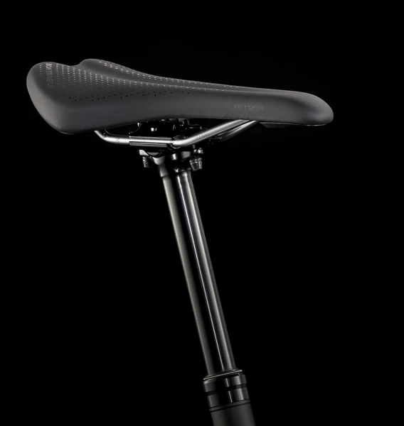 – The dropper post lets you lower your saddle on the fly, so it’s out of the way on descents